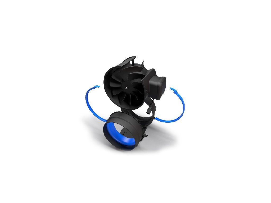 Zväčšené lopatky obežného kolesa spolu s vodiacimi lopatkami vytvárajú maximálne prúdenie vzduchu pri vysokom tlaku