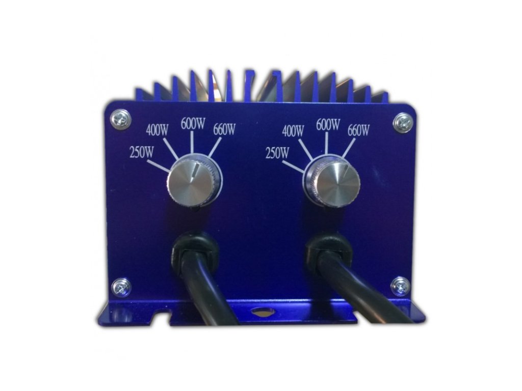 Digitální předřadník Lumatek Twin 600W jsou dva 600W stmívatelné elektronické předřadníky umístěné v jednom pouzdře, které jsou navrženy tak, aby umožňovaly nezávislé napájení a ovládání dvou HPS nebo MH pěstebních výbojek.