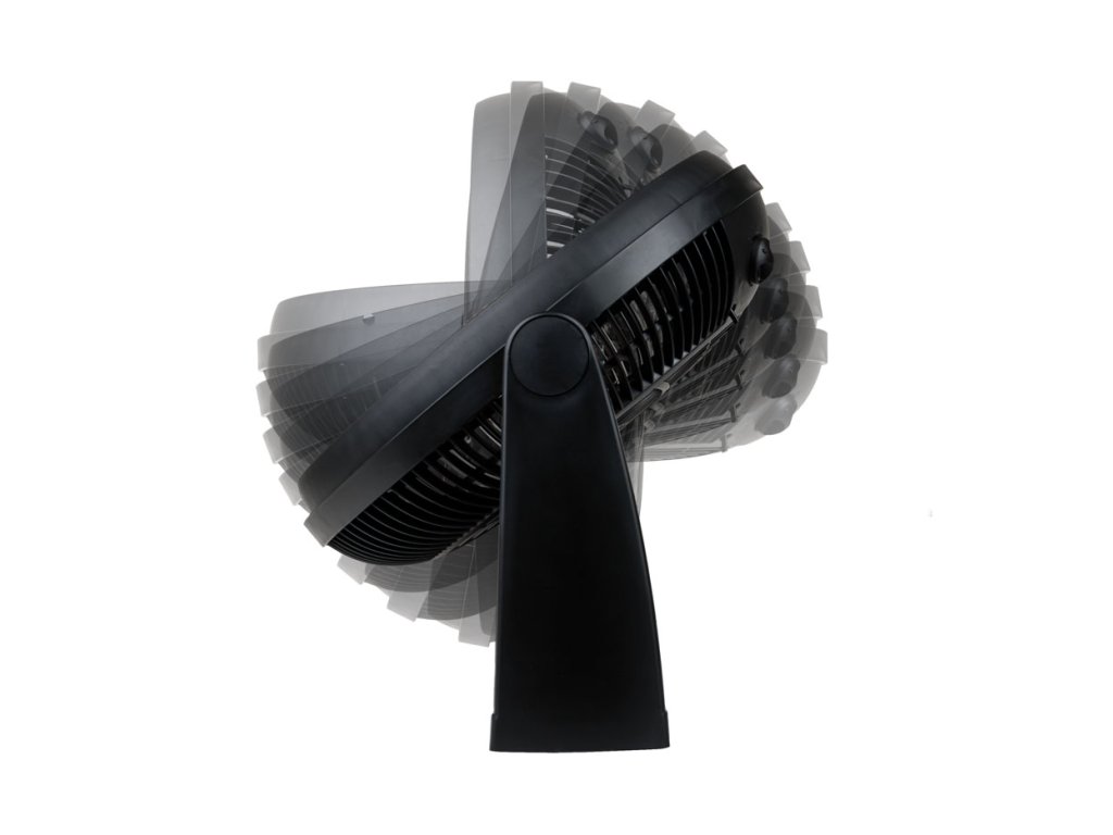 Podlahový cirkulační ventilátor Cyclone s výkonným a tichým motorem se třemi rychlostními stupni. Výhodou je velká variabilita určení směru proudění.