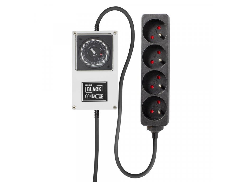 Časovač se stykačem LUMii BLACK je jednoduchým a nákladově efektivním řešením pro časování světel v pěstební místnosti.