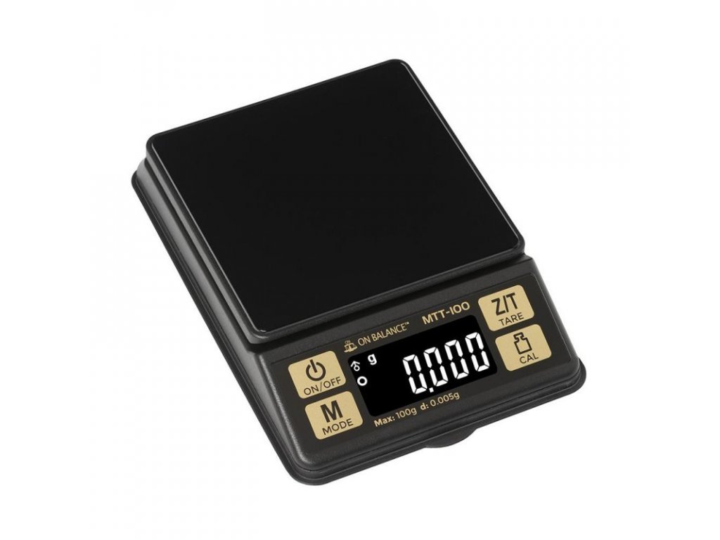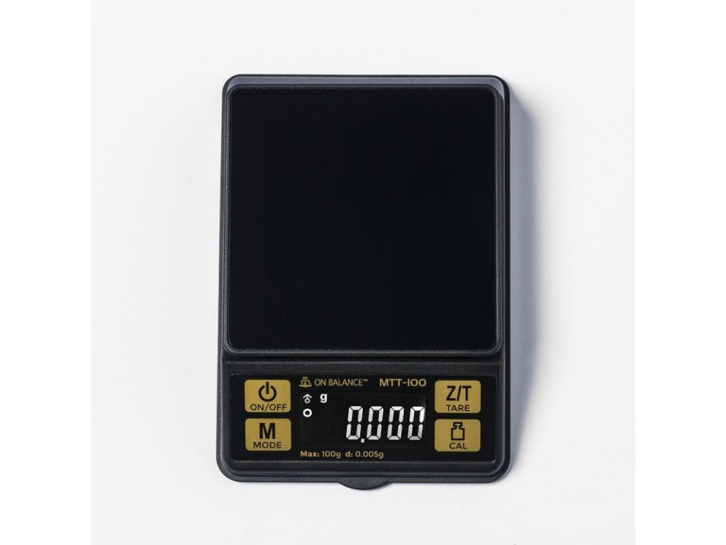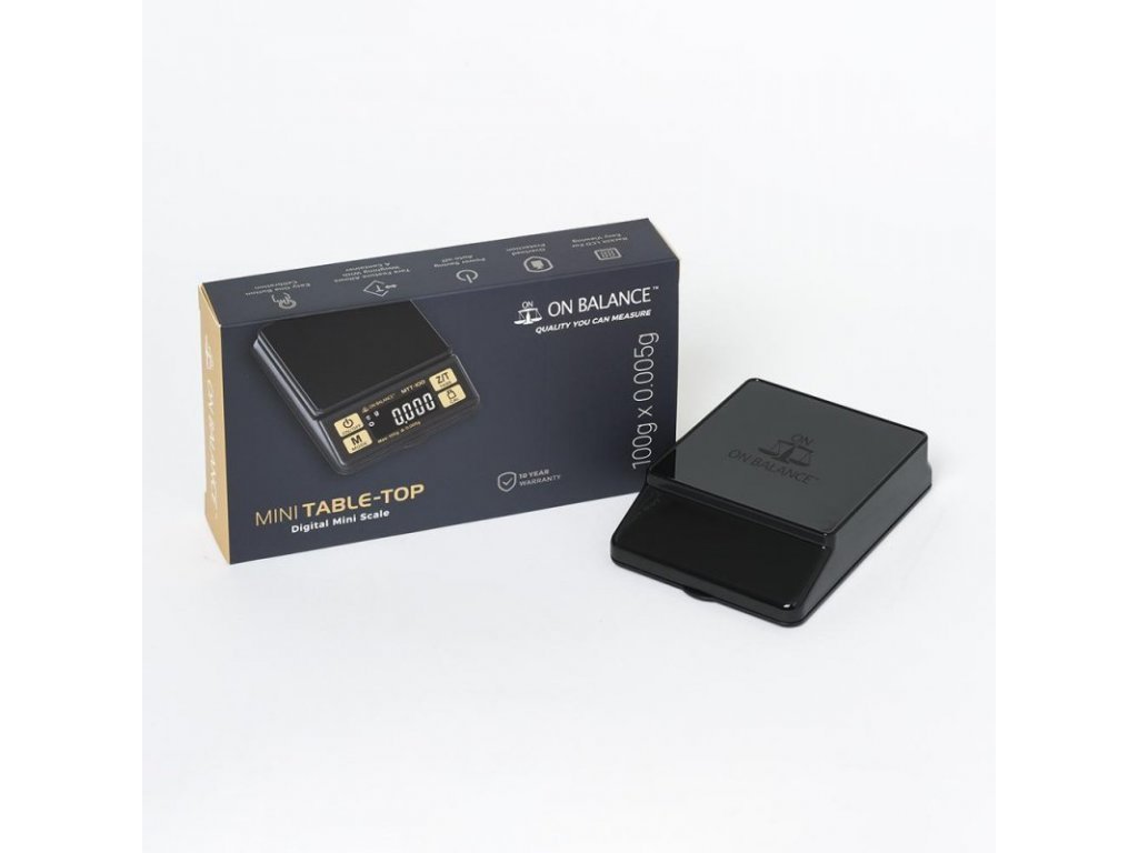 Digitálna váha s presnosťou na 5 tisícin gramu a kapacitou 100 gramov, Mini Table Top Scale. Hmotnosť 125g, rozmery 10,9x7,5x2,5cm. On Balance kvalita.